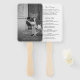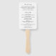 Classic style wedding program hand fan featuring a simple yet elegant design with your event details in traditional serif fonts over your favourite photo.