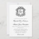 This elegant monogram wedding invitation features an ornate crest with interlocked fancy script calligraphy for the initials of the bride and groom and the names, in classic black and white. Find matching products in the collection, or message me through Zazzle Chat for more products and design tweaks.