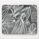 Elegant Black and White Monogram Leaves Drawing Mouse Pad