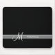A trendy designer mousepad with a sleek black background and modern frosted white stripe. Personalise this elegant monogrammed mousepad by adding your name and initials.