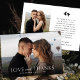 This stylish, elegant wedding thank you flat card features a full bleed photo template on the front, along with simple typography reading, "Love and Thanks" in white. A dark gradient overlay towards the bottom allows the text to stand out against your photo - it can be adjusted up or down, if needed. The back contains another photo template and text templates for further personalisation. Two birds in black add another elegant touch on the back.