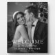A beautifully elegant tabletop plaque to welcome guests to your wedding. All of the text can be edited to suit your event, whether it be a wedding or some other type of party or gathering. Load your photo in place of the sample placeholder photo shown. You can use either black and white or colour photo. Be sure to use a photo in vertical portrait orientation.