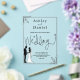 This elegant black-and-white acrylic wedding invitation is perfect for a modern wedding. The simple design features elegant black calligraphy, a chic black frame, and a bride-and-groom illustration on a clear transparent background. The invitation card includes the wedding details on the back instead of paying for a separate enclosure card.
