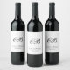 Elegant Black and White Script Monogram Wedding Wine Label
