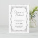 Graceful and timeless, this elegant black and white wedding invitation features flowing script names framed by a delicate ornamental border. The refined swirl details create a soft, romantic frame that draws the eye inward, beautifully highlighting your names and wedding date. The balanced layout blends classic charm with modern simplicity for a look that feels both sophisticated and enduring.