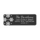 Holiday address labels feature a pattern of white snowflakes and dots with white return address and dark grey / soft black background. The background colour can be customised to coordinate with your mailing.