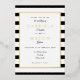 This stylish wedding invitation features an elegant real gold foil border framing your wedding details set in chic typography on a classic black and white striped background. Designed by Thisisnotme©
