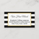 You can personalise black text with your name and new address. At the top, you can customise the elegant black script that says "We Have Moved". A faux gold bolder is around the text box. The background has black and white horizontal stripes.