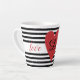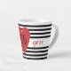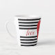 Elegant black-and-white stripes and red heart latte mug