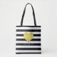 Elegant Black And White Stripes Pattern Name Tote Bag.