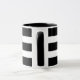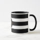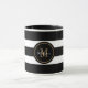 Enjoy your morning coffee in style with this Elegant Black And White Stripes Script Monogram Mug. This classy design has black and white horizontal stripes with black circle border on the front centre. Your monogram is in faux gold minimal lettering and personalised with name in white trendy hand lettered script. Click personalise template option and follow the prompts.