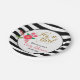 Elegant Black and White Stripes With Pink Floral Paper Plate