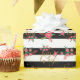 Elegant Black and White Stripes With Pink Floral Wrapping Paper