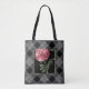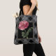 This elegant black and white striped women's tote bag with pink flower for romantic beauty. Perfect for classy gifts, everyday chick fashion, grocery shopping, weddings, bridesmaids, birthdays.