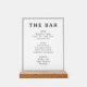 Elegant Black and White Typographic Bar Menu Acrylic Sign