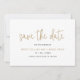 Modern typography Save the Date Card featuring a simple design with "save the date" and your names in an elegant faux gold script font. A chic and stylish design to announce the date of your upcoming wedding.