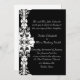 Elegant black coloured wedding invitation, with a ornate white baroque design on the left side. Customise all the text fields to your needs. Change text style and colour too if you choose.