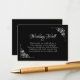 An elegant black and white wedding wishing well enclosure card featuring ornate lace diagonal corners to frame the text.