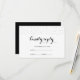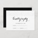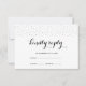 Elegant black text and white background with delicate black dots on the front, and plain black back wedding response card.