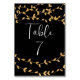 Romantic and Elegant Black and White with Gold Leaves Wedding Table Number designed with soft gold coloured leaves and white text on a black background. The text includes: Table and a number. To personalise, simply insert one number per card ordered. Sample shows number 7. Note the number will automatically repeat on the reverse. Please check front and reverse before ordering each card.