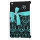 Elegant Black Aqua Damask Diamond Bow Monogram iPad Mini Case