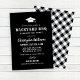 Celebrate your graduate with this black graduation party invitation featuring a bold “Backyard BBQ” headline, graduation cap icon, and clean rustic typography. Perfect for a casual cookout, open house, or summer backyard celebration. Backside features a coordinating black and white gingham pattern for a classic picnic vibe. Personalise with your graduate’s name and party details.