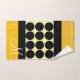 Elegant black beige & yellow dots monogram name bath towel set