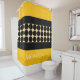 elegant stylish black beige and yellow dots monogram name shower curtain , custom shower curtain .home decor