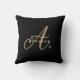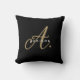 Elegant Black Black Gold Script Monogram Throw Pillow