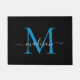 Elegant Black Ocean Blue Bright Blue Custom Monogram Script Name Doormat