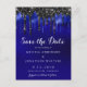 Elegant Black Blue Glitter Drips Save The Date Inv Postcard
