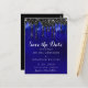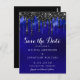 Elegant Black Blue Glitter Drips Save The Date Postcard