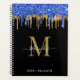 Elegant Black Blue Gold Glitter Drips Monogram Planner
