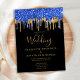Elegant Black Blue Gold Glitter Drips Wedding Invitation Postcard