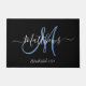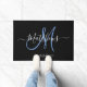 Elegant Black Blue Monogram Script Family Name Doormat
