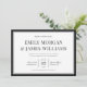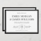 This classic wedding invitation design features crisp white background with black border paired with vintage inspired typography. The look is elegant, chic, and timeless. Together these elements create an elegant wedding invitation design that would be perfect for any style of wedding.