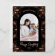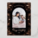 This beautiful Christmas greeting features an elegant botanical real foil framed arch photo on the front, and includes a full photo back of the card. Real foil "Merry Christmas" hand lettering script and your name and year in simple text on a black background add to the festivity of this stylish holiday greeting.