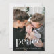 Elegant Christmas greeting features a beautiful black and white leafy botanical pattern with peace in big white type, and one full photo. Please shop this festive holiday collection for coordinating items!