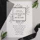 Introduce your wedding with these elegant black botanical square frame wedding vellum invitations. Featuring a delicate botanical border arranged in a square frame and paired with clean, modern typography, this design exudes timeless sophistication. The translucent vellum adds a touch of elegance, making these invitations perfect for romantic and nature-inspired wedding themes.