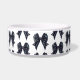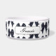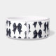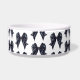 Elegant Black Bow Dog Bowl easily add your pet's name in cursive script font. Trendy coquette black bow pattern.