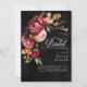 Step into a realm of exquisite elegance with our floral dark and moody bridal shower invitation. Designed to captivate the senses, this invitation boasts a striking black background adorned with a breathtaking burst of mysterious florals in deep burgundy, soft pink, creamy hues, complemented by lush olive green foliage. The creamy elegant script text delicately adds a touch of romance to the overall allure. Embrace the opulence of the rich tones and set the tone for your special day with this stunning invitation, sure to leave a lasting impression on your guests. Created by Simply Farmhouse Press.