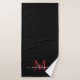 Elegant Black Burgundy Red Monogram Script Name Bath Towel