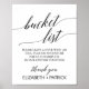 This elegant black calligraphy bucket list sign is perfect for a simple wedding. The neutral design features a minimalist poster decorated with romantic and whimsical typography. Personalize the sign with the names of the bride and groom.