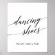 This elegant black calligraphy dancing shoes sign is perfect for a simple wedding. The neutral design features a minimalist poster decorated with romantic and whimsical typography.