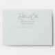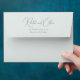 This wedding envelope features a minimalist and elegant design with a focus on typography. The names are displayed in an elaborate cursive script, while the address is presented in a simple serif font, creating a balance between sophistication and clarity. The monochromatic colour palette enhances its formal and refined aesthetic, making it perfect for weddings or significant announcements. Its clean layout and absence of decorative elements emphasize simplicity and timelessness, ideal for those who appreciate understated elegance.