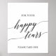This sign we purchased in both black and gold! We are placing it in a frame to put on the table at our wedding. These signs are just so beautiful! We purchased gold and black ink printing, but I would recommend darker colors like black or navy as the printing of this specific font will stand out better!