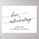 This elegant black calligraphy love is intoxicating sign is perfect for a simple wedding. The neutral design features a minimalist sign decorated with romantic and whimsical typography. Personalise this open bar sign with the names of the bride and groom.