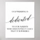 This elegant black calligraphy wedding dedication sign is perfect for a simple wedding. The neutral design features a minimalist poster decorated with romantic and whimsical typography.