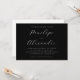 This elegant wedding invitation features a sophisticated black background with crisp white text, creating a striking contrast. The design employs a combination of cursive and serif fonts to highlight the names while maintaining a formal tone throughout. Its minimalistic layout emphasizes legibility and balance, making it perfect for couples seeking a classic and timeless look. The absence of decorative motifs keeps the focus on the event details, conveying an atmosphere of anticipation and celebration. Ideal for those who appreciate understated elegance in their special day invitations.