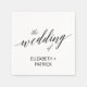 These elegant black calligraphy wedding napkins are perfect for a simple wedding reception. The neutral design features a minimalist napkin decorated with romantic and whimsical typography. Personalise the napkins with the names of the bride and groom. These napkins can be used for the wedding reception, rehearsal dinner, engagement party and more!
